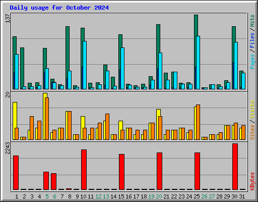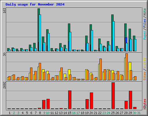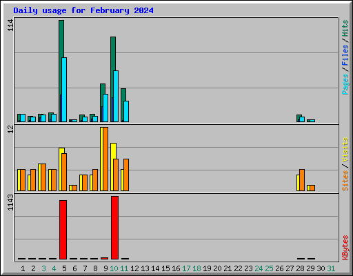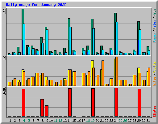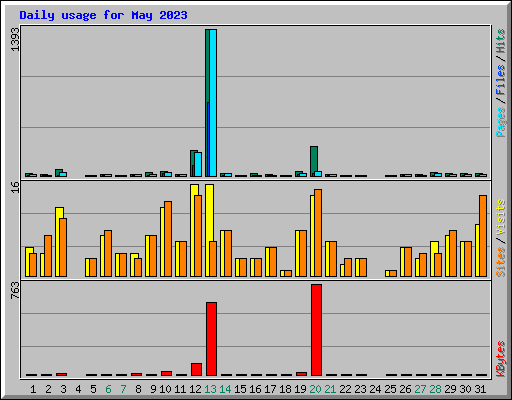 | Day | Hits | Files | Pages | Visits | Sites | KBytes | ||||||